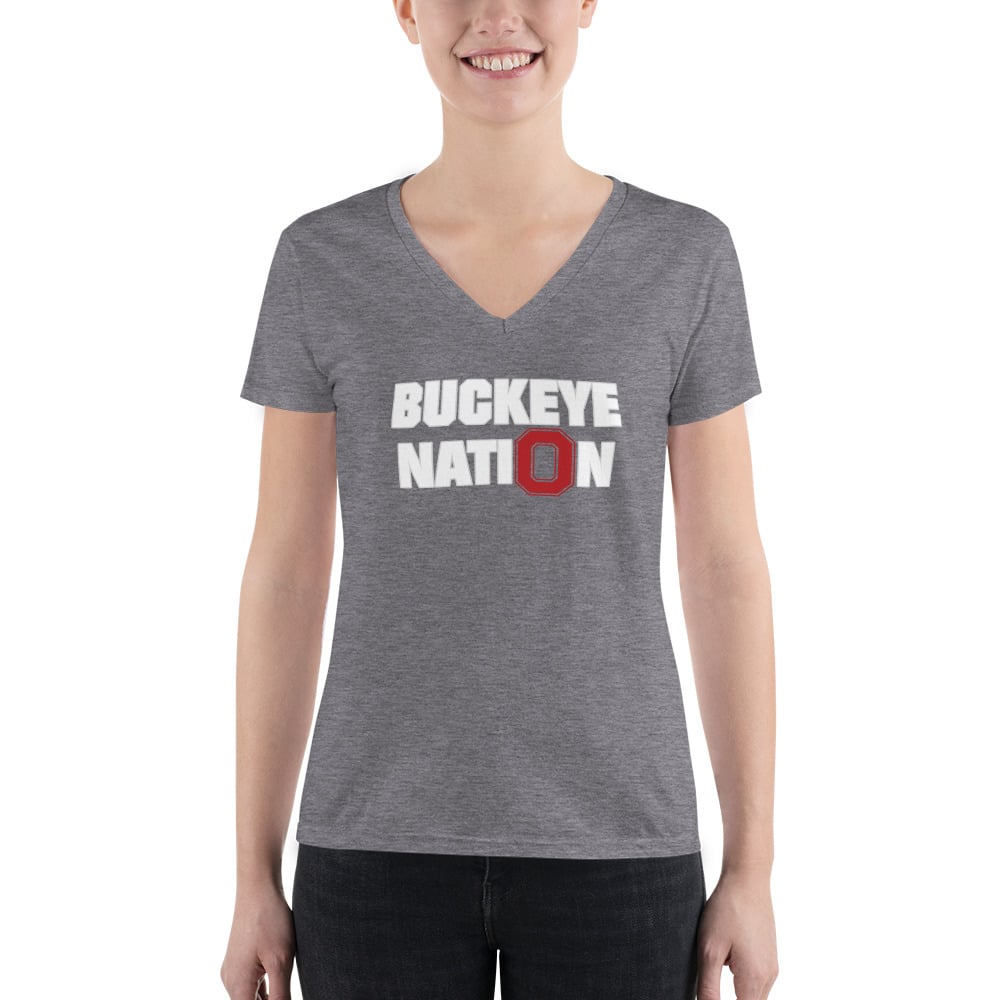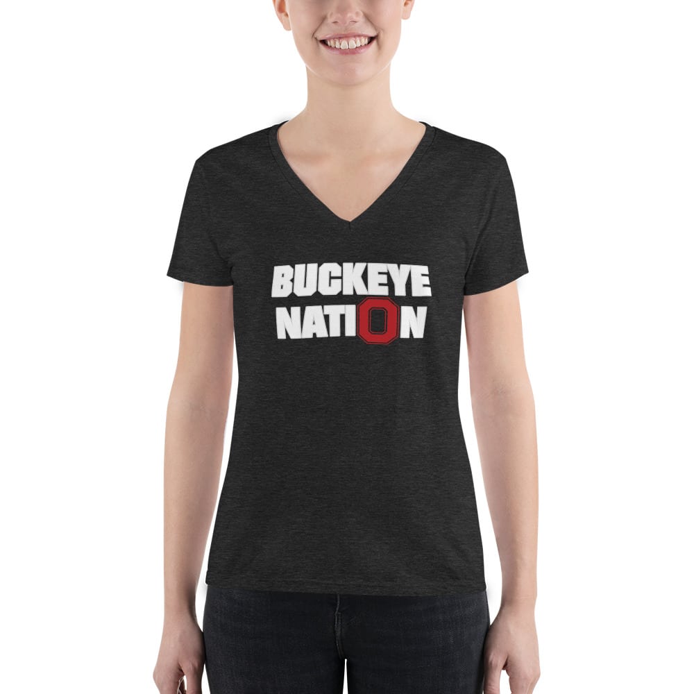 Buckeye Nation Reversed Red Block O Women’s Fashion Deep V-neck Tee